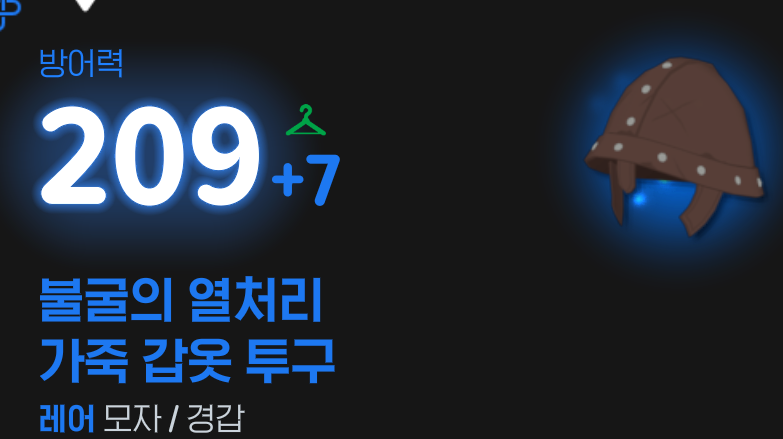 보라색 옷걸이로 +7의 능력치가 증가된 모습을 볼 수 있다.